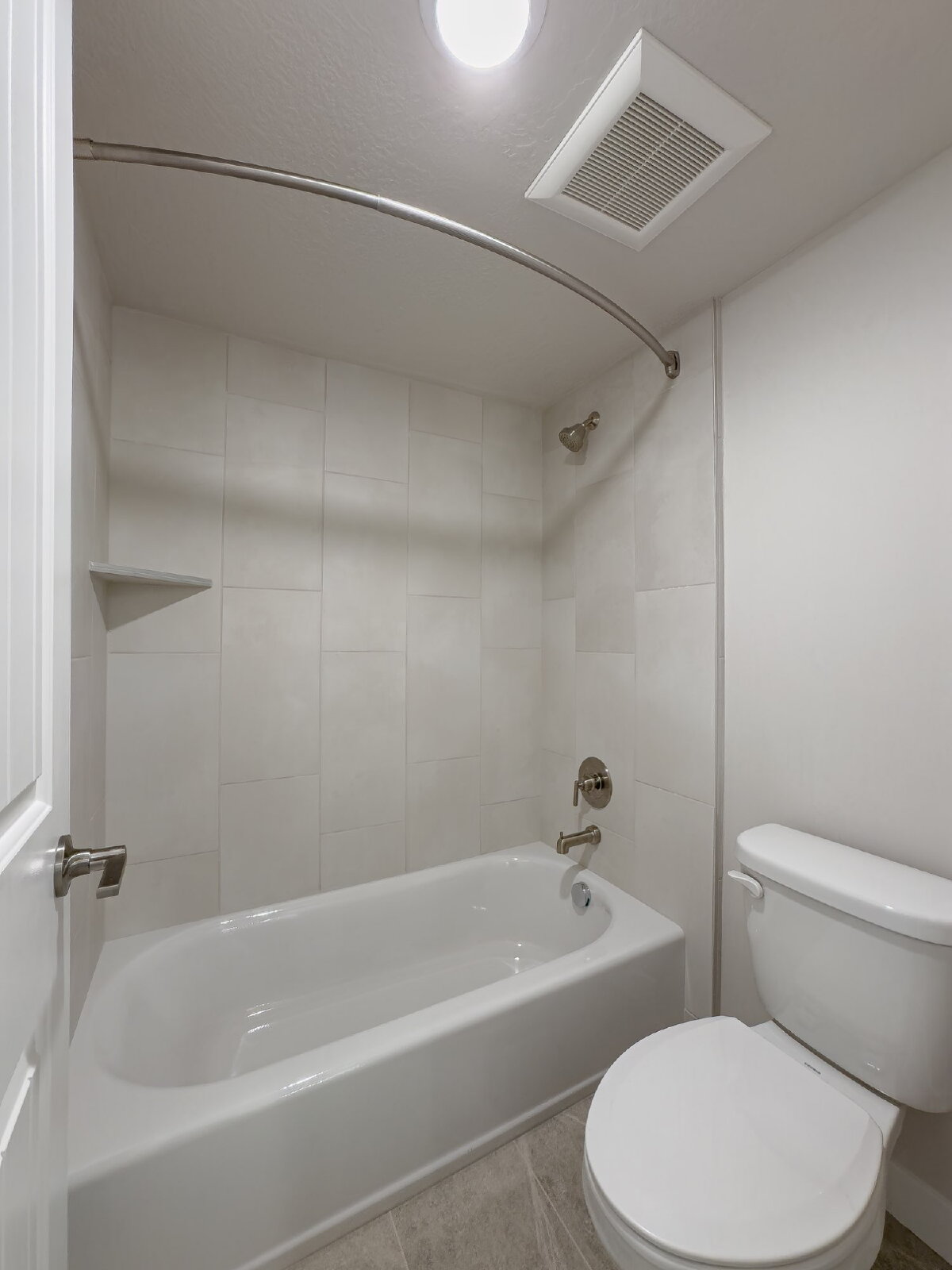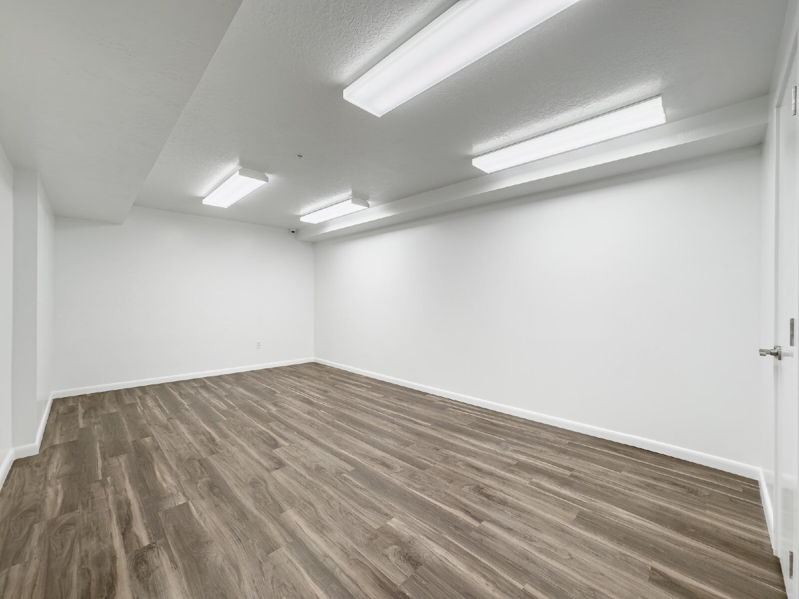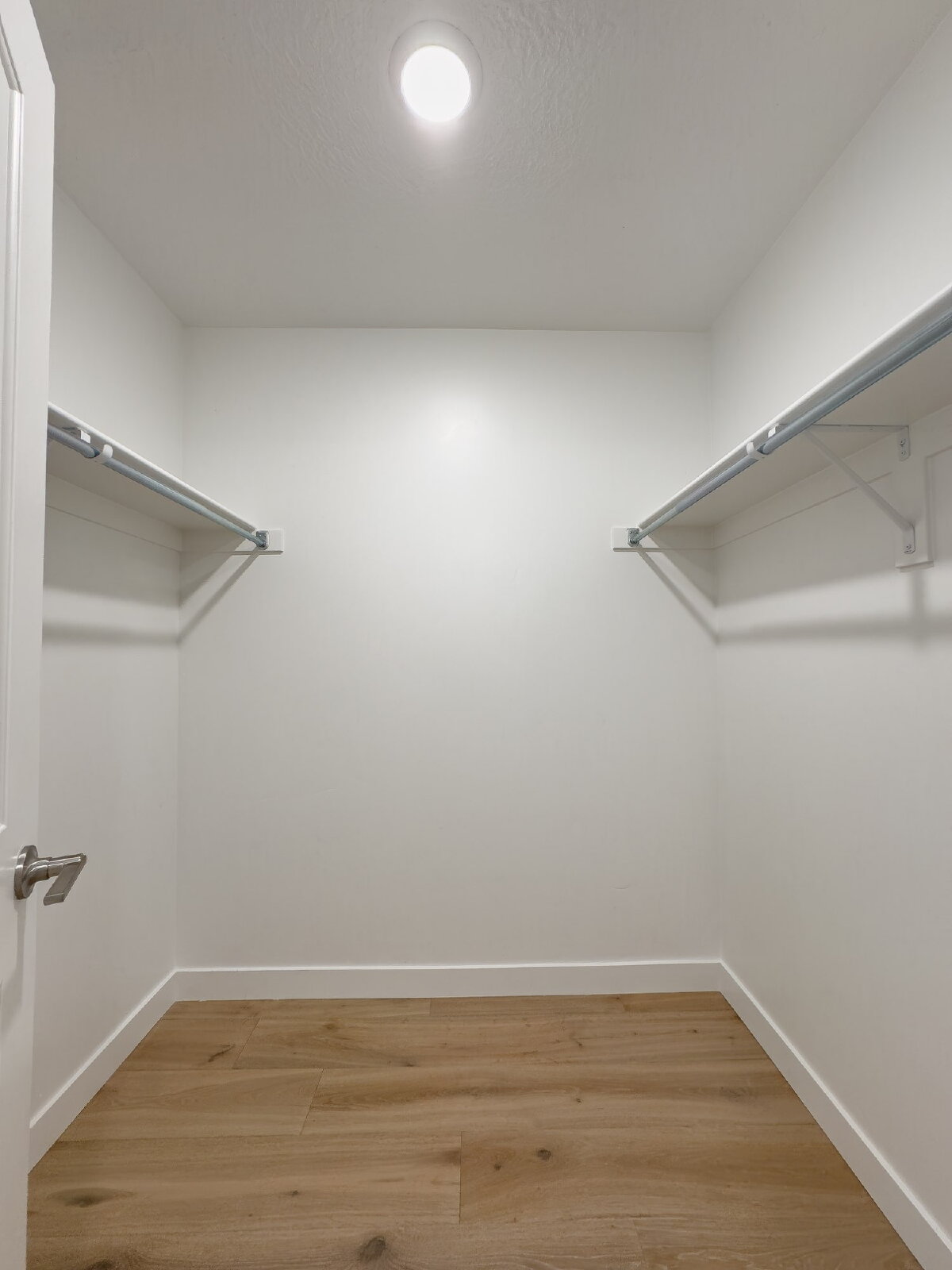 Oversized windows fill the home with natural light, complemented by ample overhead lighting to create a bright and welcoming atmosphere. The bedroom features a large walk-in closet, while a dedicated storage room provides additional space for organization.